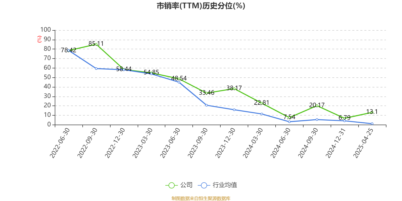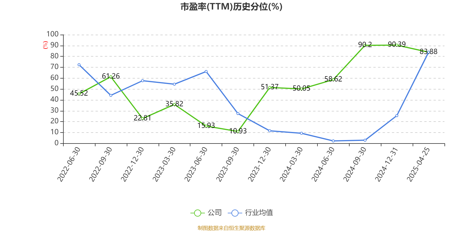 以4月25日收盘价计算,联泓新科目前市盈率(TTM)约为74.07倍,市净率(LF)约2.58倍,市销率(TTM)约2.98倍。