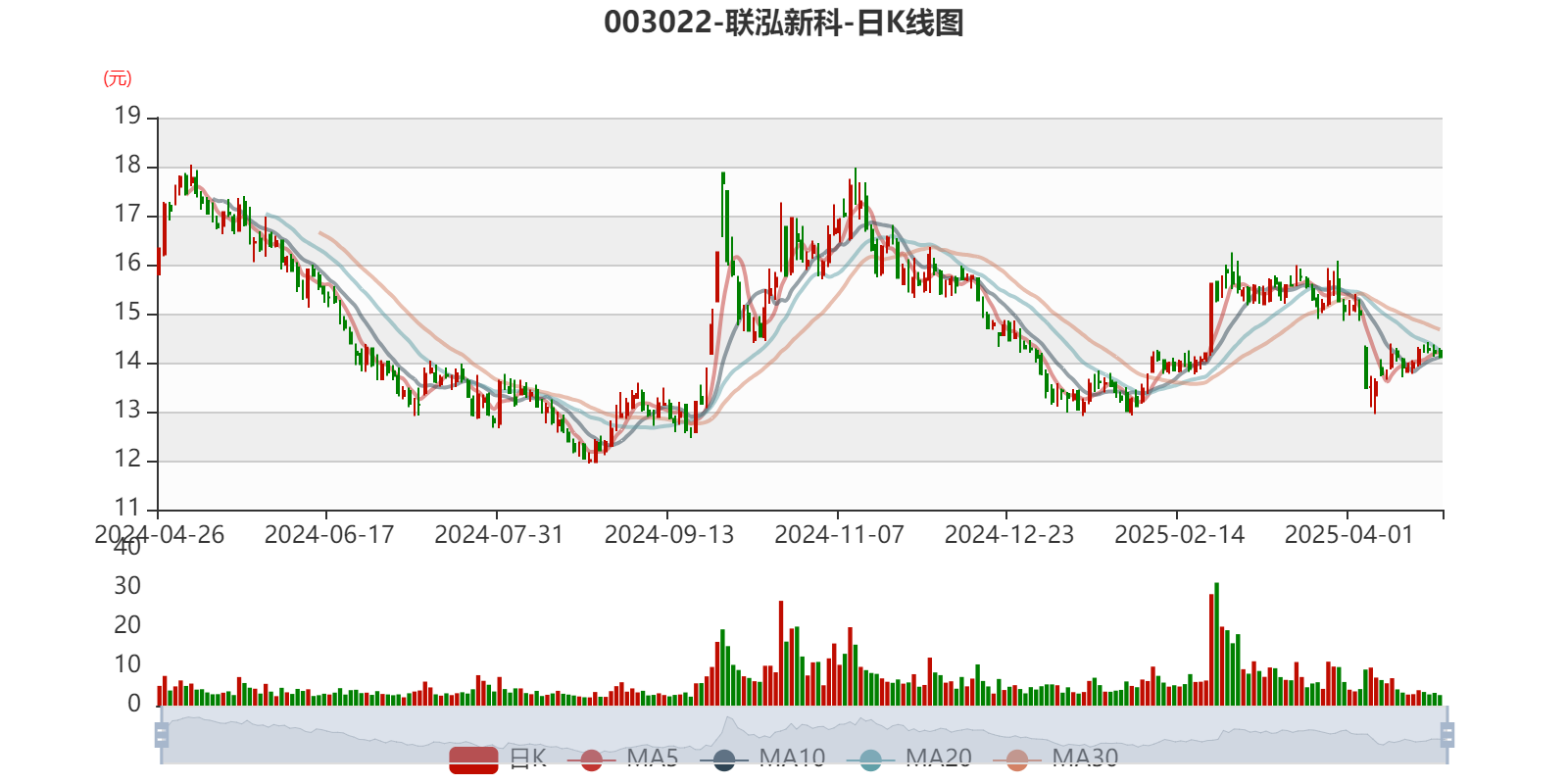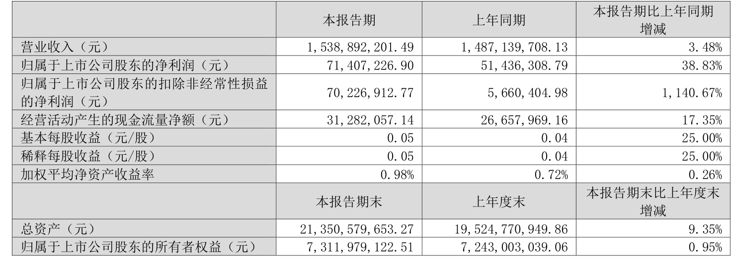 中证智能财讯联泓新科(003022)4月26日披露2025年第一季度报告。公司实现营业总收入15.39亿元,同比增长3.48%;归母净利润7140.72万元,同比增长38.83%;扣非净利润7022.69万元,同比增长1140.67%;经营活动产生的现金流量净额为3128.21万元,同比增长17.35%;报告期内,联泓新科基本每股收益为0.05元,加权平均净资产收益率为0.98%。