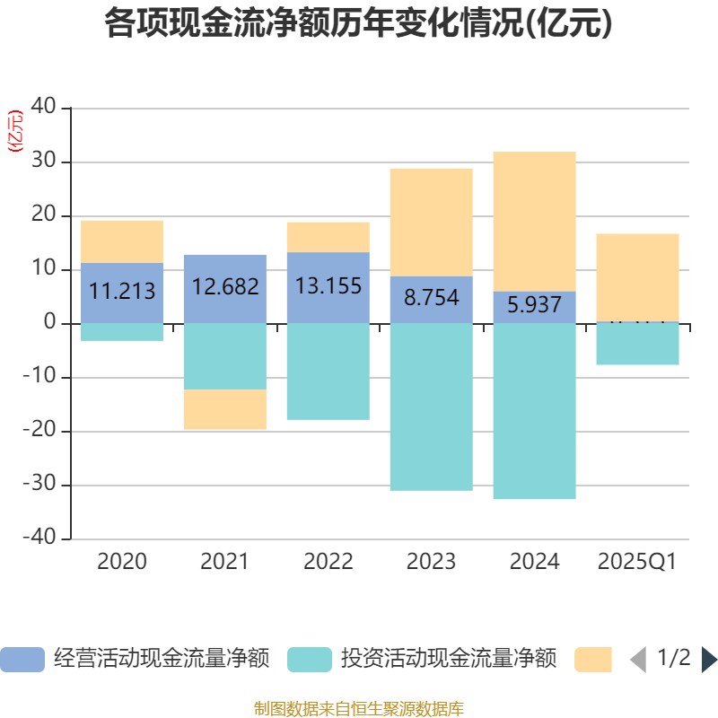 截至2025年一季度末,公司经营活动现金流净额为3128.21万元智云理财,同比增长17.35%;筹资活动现金流净额16.26亿元,同比增加2.4亿元;投资活动现金流净额-7.75亿元,上年同期为-5.59亿元。