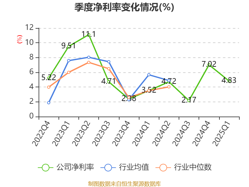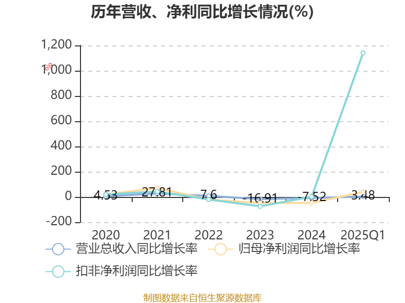 资产重大变化方面,截至2025年一季度末,公司货币资金较上年末增加47.13%,占公司总资产比重上升4.04个百分点;固定资产较上年末减少1.9%,占公司总资产比重下降3.87个百分点;在建工程合计较上年末增加16.55%,占公司总资产比重上升1.66个百分点;无形资产较上年末减少4.15%,占公司总资产比重下降1.01个百分点。