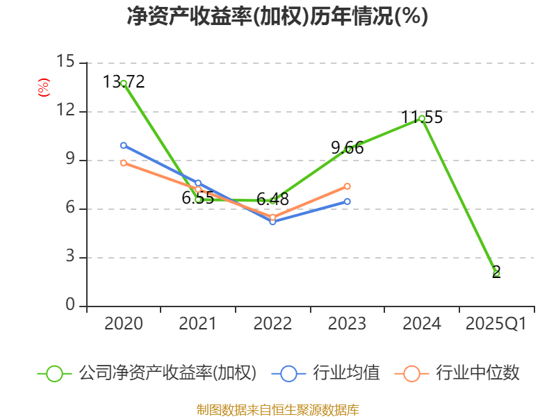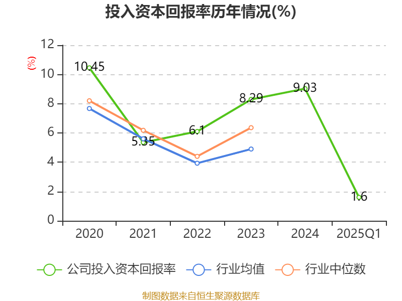 盈利能力方面, 2025年一季度公司加权平均净资产收益率为2%,同比下降0.66个百分点。公司2025年第一季度投入资本回报率为1.6%,较上年同期下降0.52个百分点。