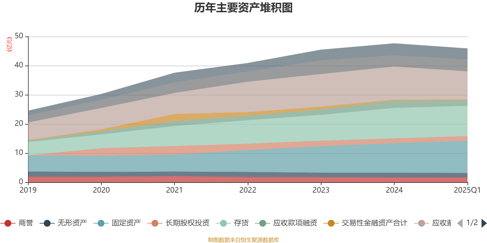资产重大变化方面,截至2025年一季度末,公司应收票据及应收账款较上年末减少14.91%,占公司总资产比重下降2.8个百分点;固定资产较上年末增加8.49%,占公司总资产比重上升2.68个百分点;在建工程合计较上年末减少51.07%,占公司总资产比重下降1.37个百分点;应收款项融资较上年末减少23.87%,占公司总资产比重下降1.08个百分点。