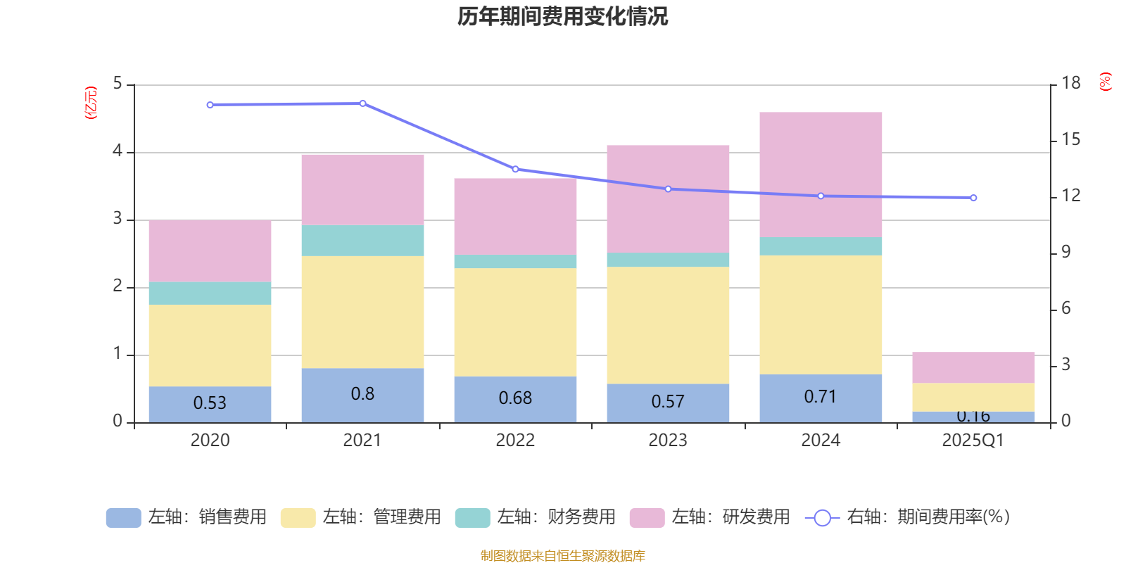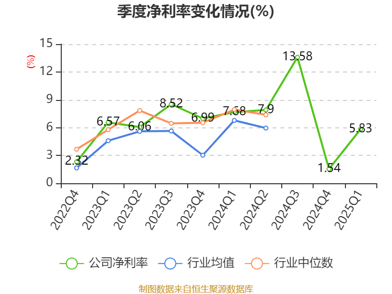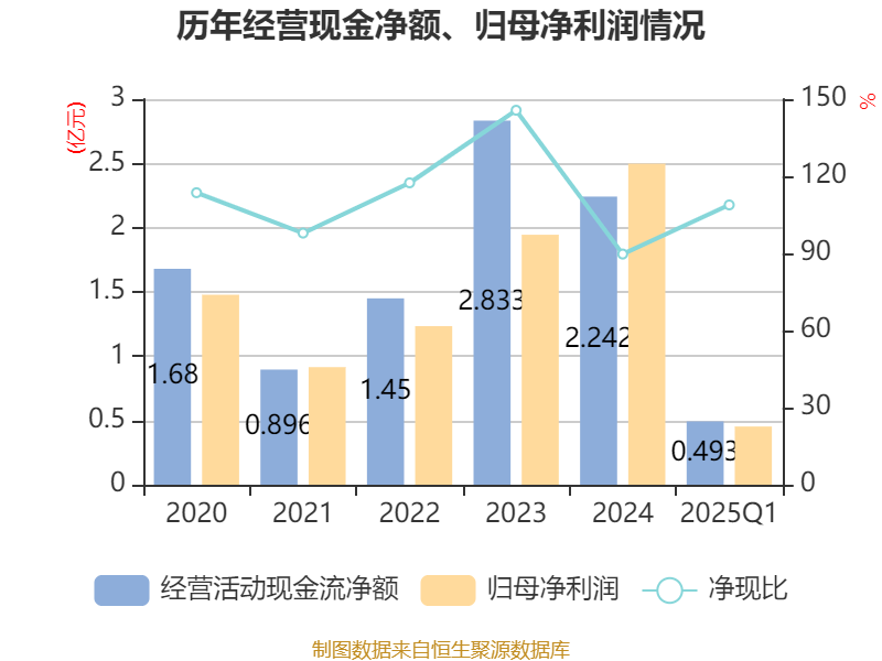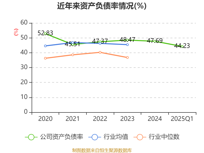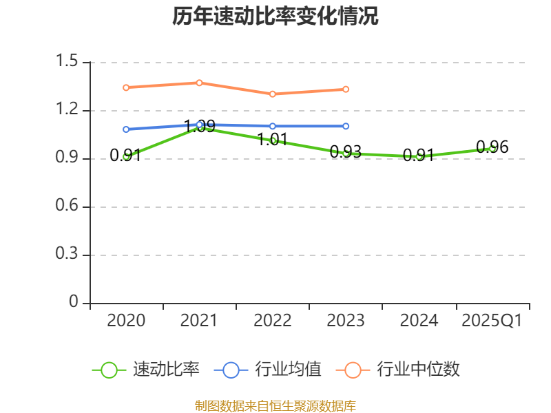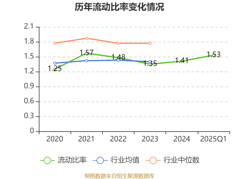 2025年第一季度,公司流动比率为1.53,速动比率为0.96。