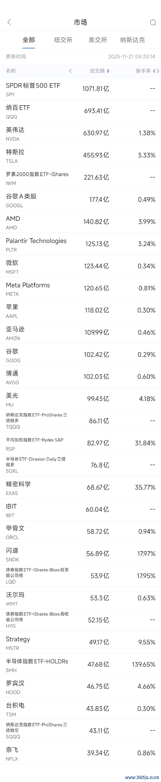 第16名沃尔玛收高6.46%,成交53.3亿美元。该公司第三季度利润与销售额均超出市场预期。在当前消费者环境充满不确定性、部分主要竞争对手承压的背景下,沃尔玛仍实现了增长。